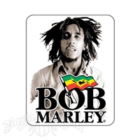 This rasta sticker features Bob Marley Sepia. Bob Marley is pictured in his sepia pose and The Bob Marley Logo is on the bottom. Approximate size: 4.5" x 5.5".