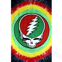 This Grateful Dead tapestry showcases the classic Steal Your Face logo with the rasta theme tye dyed colors. Great item for your room decor. There are so many uses for a tapestry such as a wallhanging, bed sheet, table cloth, curtains, ceiling art, beach blanket, picnic blanket, couch cover. All tie dyes have their own unique appearance and each may be a little different than what is pictured.