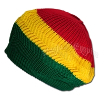 This brown oversized beanie has the rasta stripes around the middle of the crown.
