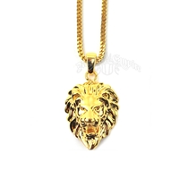It’s hard to overlook this brilliant gold necklace with its roaring lion charm. The necklace has a 22-inch Franco wheat style chain and the chain and charm are both plated in 18k yellow gold. The charm is about 1.5 inches in height.