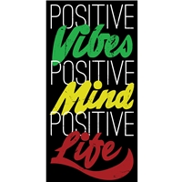 Spread some positivity with this black 3"x6" rectangle sticker. It features a bold RastaEmpire Original design of “Positive Vibes, Positive Mind, Positive Life.” The word “positive” is rendered in white, while the other words are inked in green, yellow, and red Rasta colors.