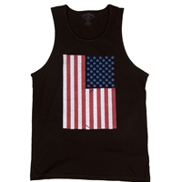 This black tank features a vertical American flag with distressed red and white stripes, and blue pot leafs in place of the traditonal stars. Made of 100% cotton. This is an original Seven Leaf design.