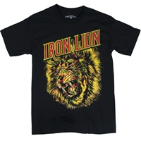 This black t-shirt features a Rasta colored roaring lion that has a painted look. Printed above the lion is IRON LION in Rasta colors with a distressed look. Made of 100% cotton.