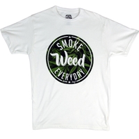 This white t-shirt features “Smoke Weed Everyday” with a marijuana plant pictured in the background of the circle. This weed shirt is made of 100% cotton. This is an original Seven Leaf design.