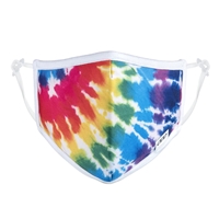 This reusable and washable face mask features a classic tie dye pattern and white straps.