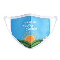 This reusable and washable face mask features “I’m a ray of f*cking sunshine” with an illustration of a sunrise.