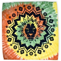 This 20"x20", 100% Cotton, tie dye, bandana features a 1 color black Lion of Judah print surrounded by a filagree pattern.