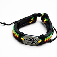 Rasta Cord and Marijuana Leaf Leather Bracelet