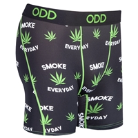 Take off your clothes in style with these super comfortable and eye-catching boxer briefs. These black boxer briefs feature a pattern of green marijuana leaves and white "Smoke Everyday" text. "ODD" is written on the waistband in green. 92% polyester 8% elastine.