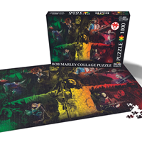 Bob Marley collage puzzle featuring some of the most iconic images of Bob. 1,000 piece puzzle will be 19" by 26" when fully assembled.