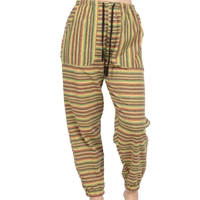 These ladies joggers feature a Rasta stripe pattern throughout the entire length of the pants. The joggers have two front pockets, and two back pockets, with an adjustable string on the front of the waist.
