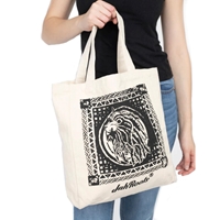 The cotton tote bag features a Lion logo. This tote bag is ideal for shopping as well as a fashion accessory for your music festival. It is strong enough to carry heavy items but will also fold up small and fit into a handbag or pocket.