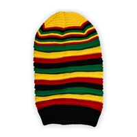 This deep Rasta stripe tam features a Rasta stripe pattern all throughout the tam.