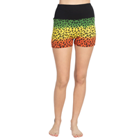 These leopard print shorts made of soft cotton and spandex are great for your Rasta look or pairing with an oversize tee for your whole day. The coordinating racerback JahRoots leopard print racer bra in the same fun prints complete this fun workout and lounge set.