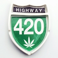- Design: "Highway 420" road sign with a cannabis leaf