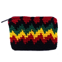 The design uses the classic Rasta colors red, yellow, and green set against a solid black background. A simple zipper closure across the top keeps everything secure. This is a great little bag to toss into a larger purse or backpack, or just to carry on its own.