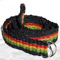 This belt is made from hemp and has rasta stripes. You can adjust the size to your fit. Colors are assorted with rasta colors and will vary from the picture. Approximate length is 48" long.
